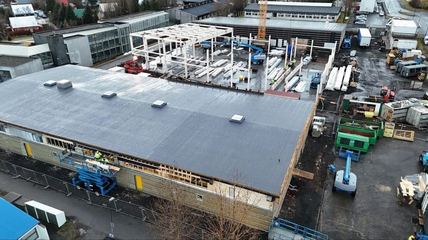 Framkvæmdir vegna stækkunar verknámsaðstöðu við FB ganga vel. Í byggingu eru tvö ný smiðjuhús auk þess sem skipt var um þak, glugga og hurðir í gömlu smiðjunni. Búið er að loka öðru af nýju húsunum og er grindin af því seinna langt komin. Með nýbyggingunum mun verknámsaðstaða við FB meira en tvöfaldast en þar verður aðstaða fyrir húsasmíði, rafvirkjun og listgreinar og er áætlað að hefja þar kennslu í janúar 2027.